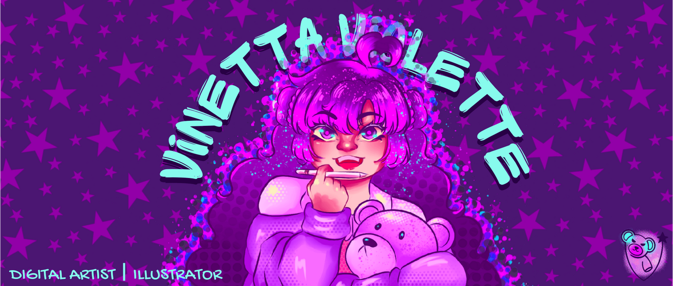 Vinetta Violette is a digital artist who creates illustrations of various themes. She is currently in her 3rd year in the College of Fine Arts and Design at the University of Santo Tomas.Driven by her love for media like anime, manga, musicals, and many others, Vinetta pursues her journey as an artist by creating art inspired by her current hyperfixations and interests. Her greatest inspirations are Japanese artists, Mika Pikazo and LAM, and Hyperpop artist, Badjaune. But aside from her digital art skills, Vinetta is also a traditional artist on the sidelines and has competed in art competitions as well. Her main traditional medium is acrylic paints and acrylic markers.Vinetta’s style leans towards more Hyperpop and colorful aesthetics. She believes that the world can be colorful despite its harshness and negativity. In her words, “Having the eyes of a crustacean makes life more fun than having the eyes of a human”😋